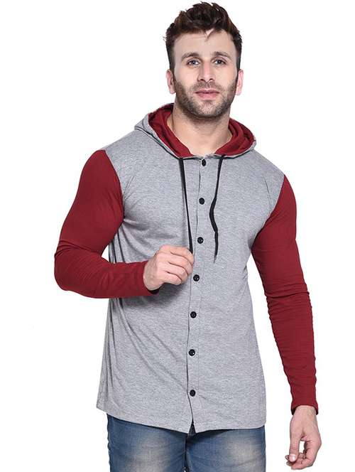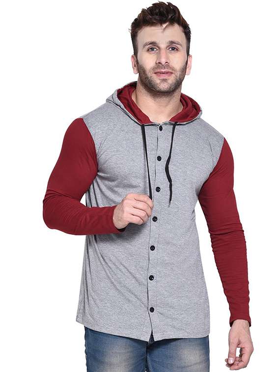 - » men hood neck color block casual shirt