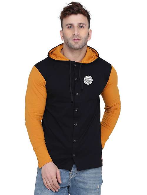 - » black & yellow colourblocked detailed hooded shirt