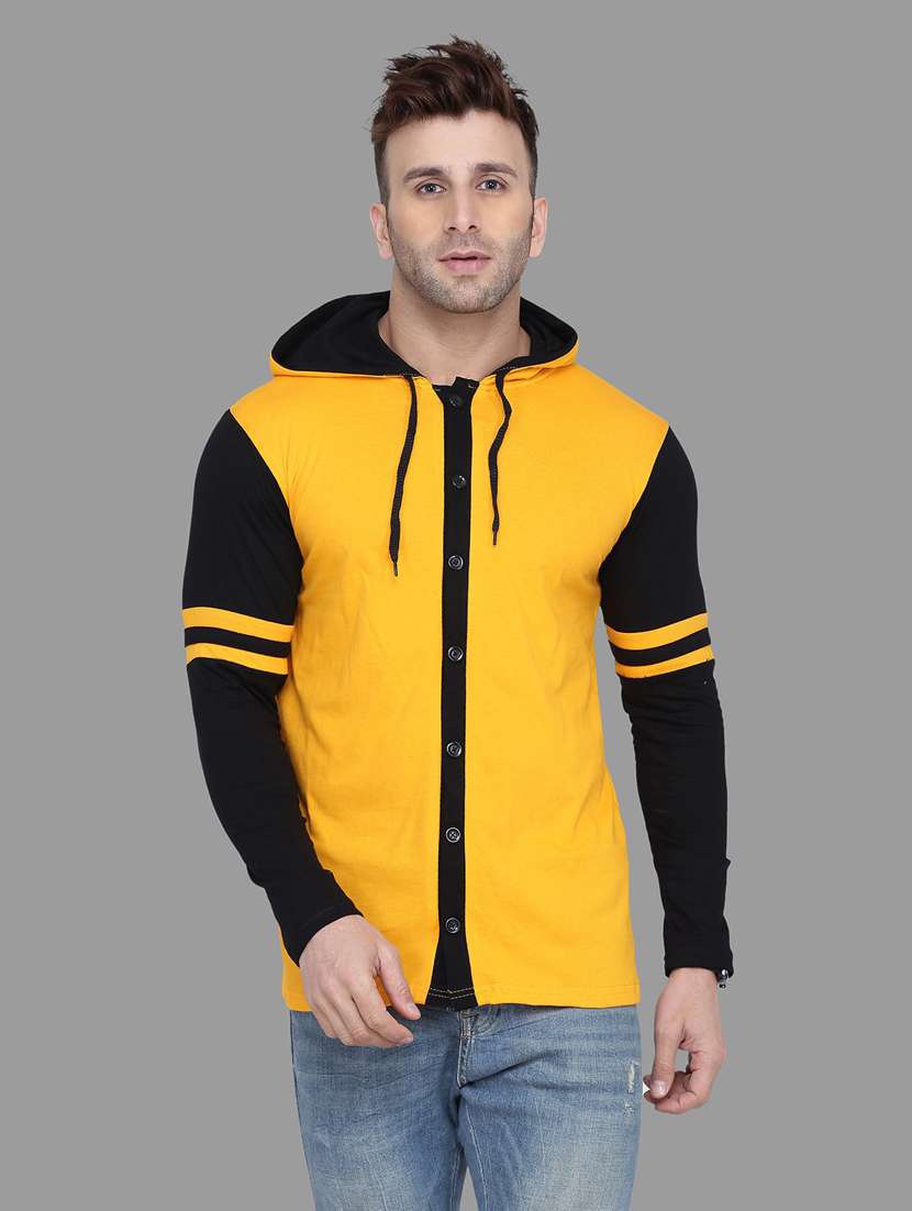 - » yellow & black cotton blend solid t-shirt