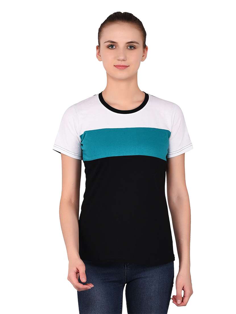 - » women color block round neck t-shirt