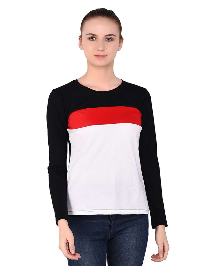 - » women color block round neck t-shirt