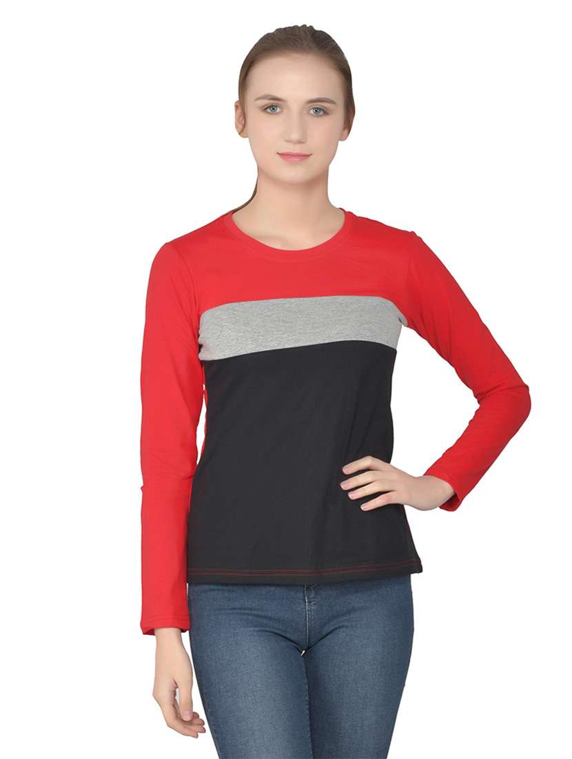 - » women color block round neck t-shirt