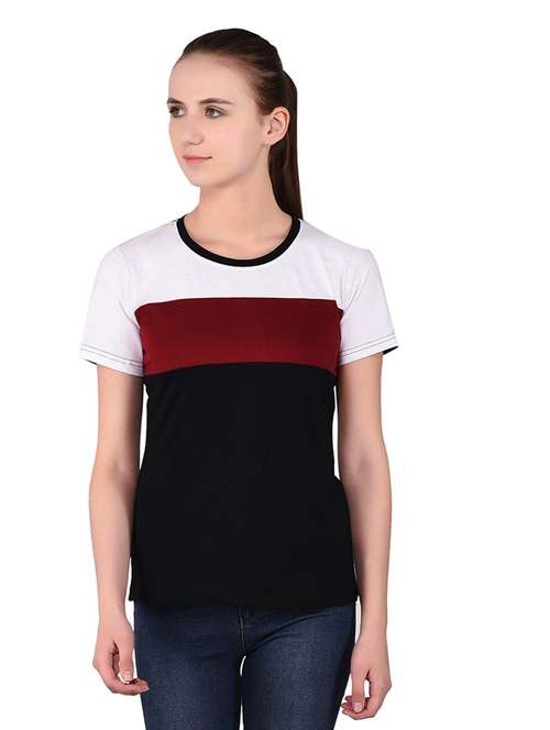 - » women color block round neck t-shirt