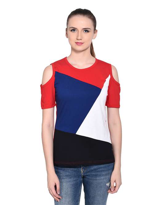 - » women color block round neck t-shirt