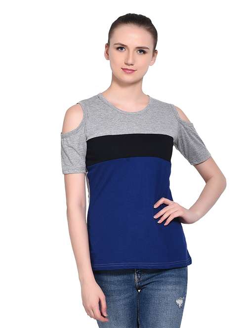 - » women color block round neck t-shirt