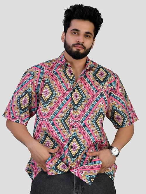 - » men geometric printed short sleeve oversized casual shirt