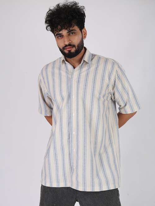 - » men striped short sleeve oversized casual shirt
