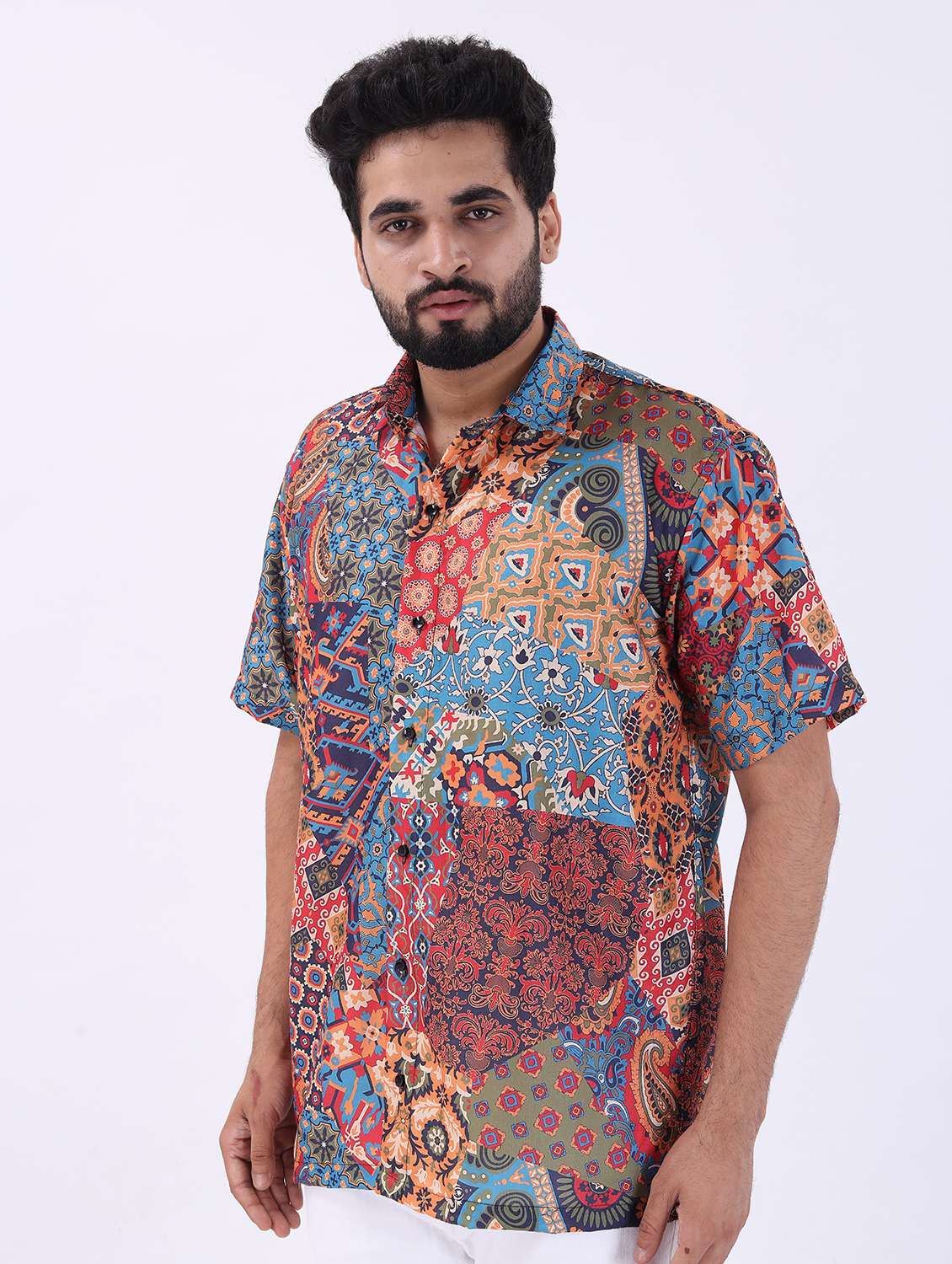 - » men printed short sleeve oversized casual shirt