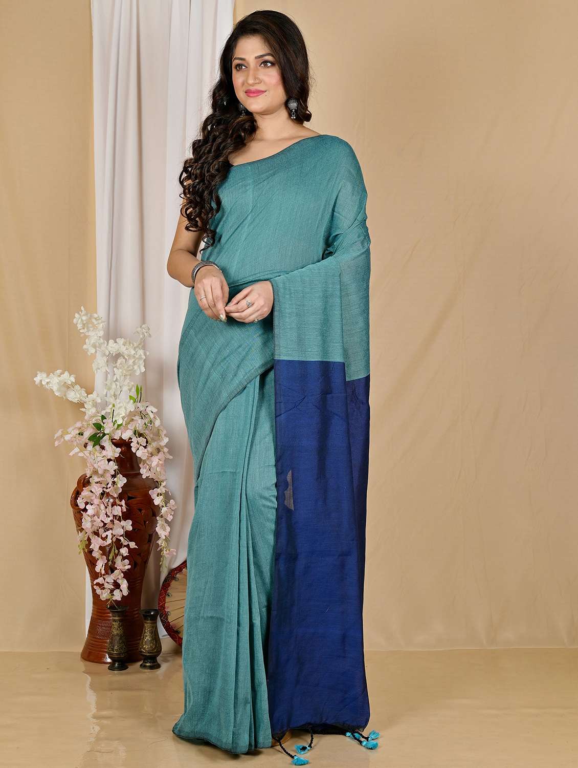 - » women solid handloom saree with blouse