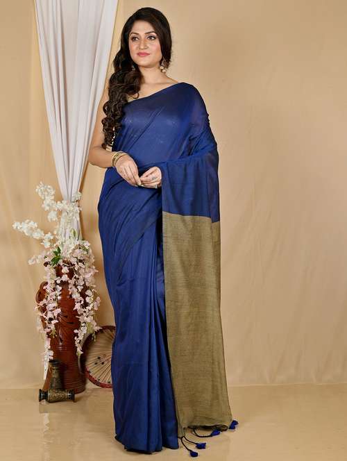 - » women solid handloom saree with blouse