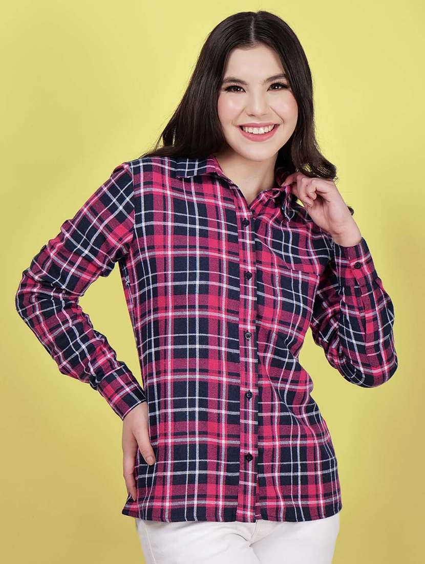- » women checked printed collared shirt