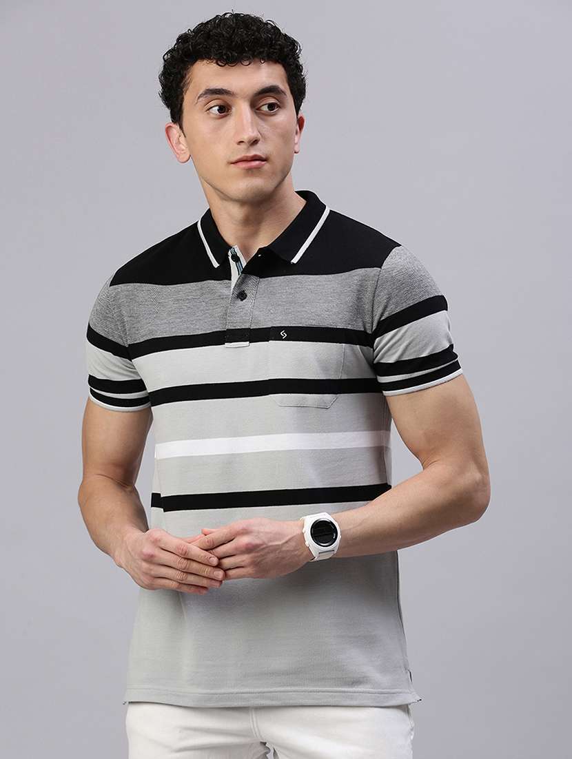 men striped short sleeve regular fit polo t-shirt