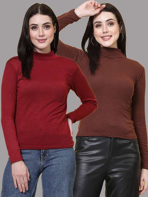 High Neck, Regular Solid Top, Full Sleeves, Casual Wear.