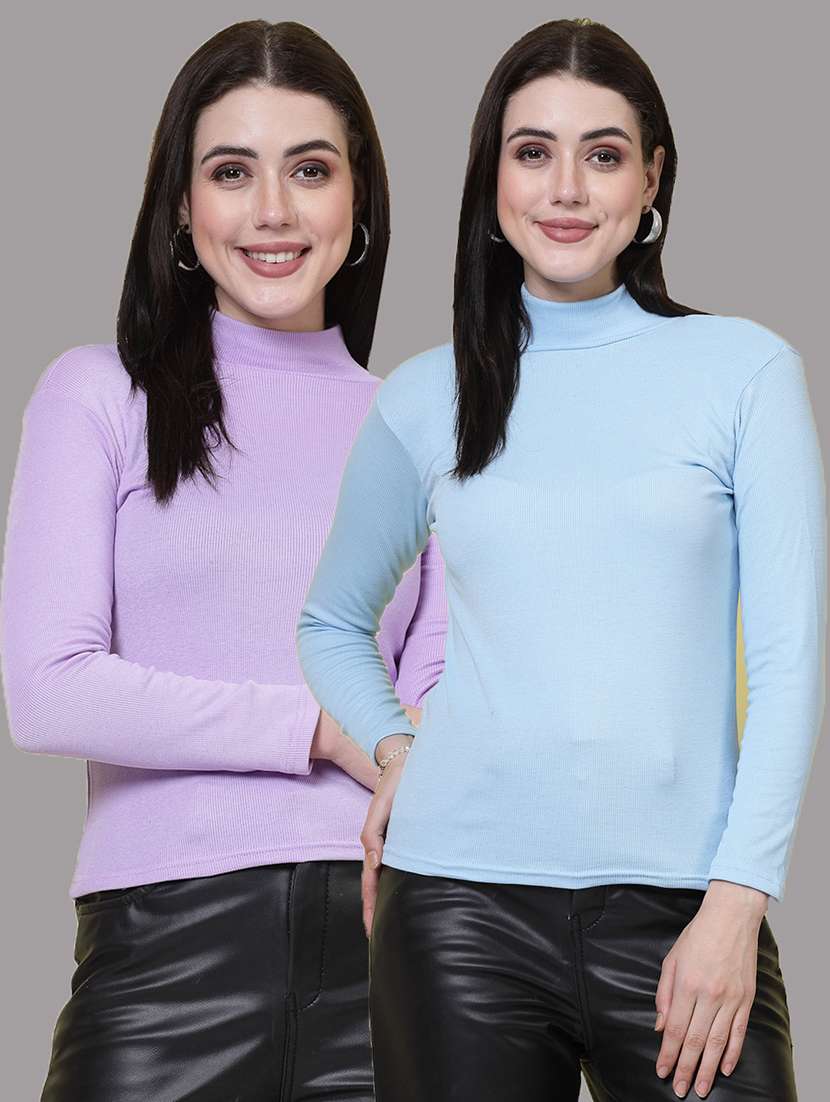 High Neck, Regular Solid Top, Full Sleeves, Casual Wear.