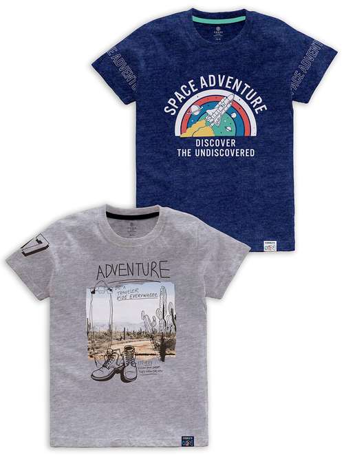 boys round neck printed set of 2 regular t-shirt
