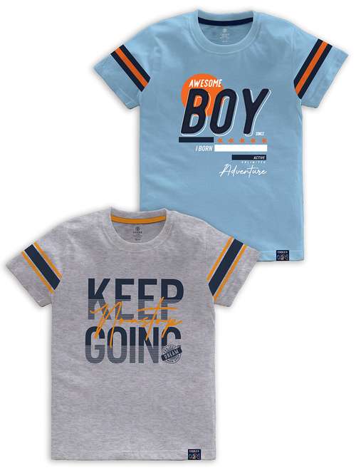 boys round neck printed set of 2 regular t-shirt