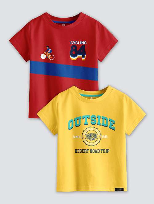 boys round neck printed set of 2 regular t-shirt