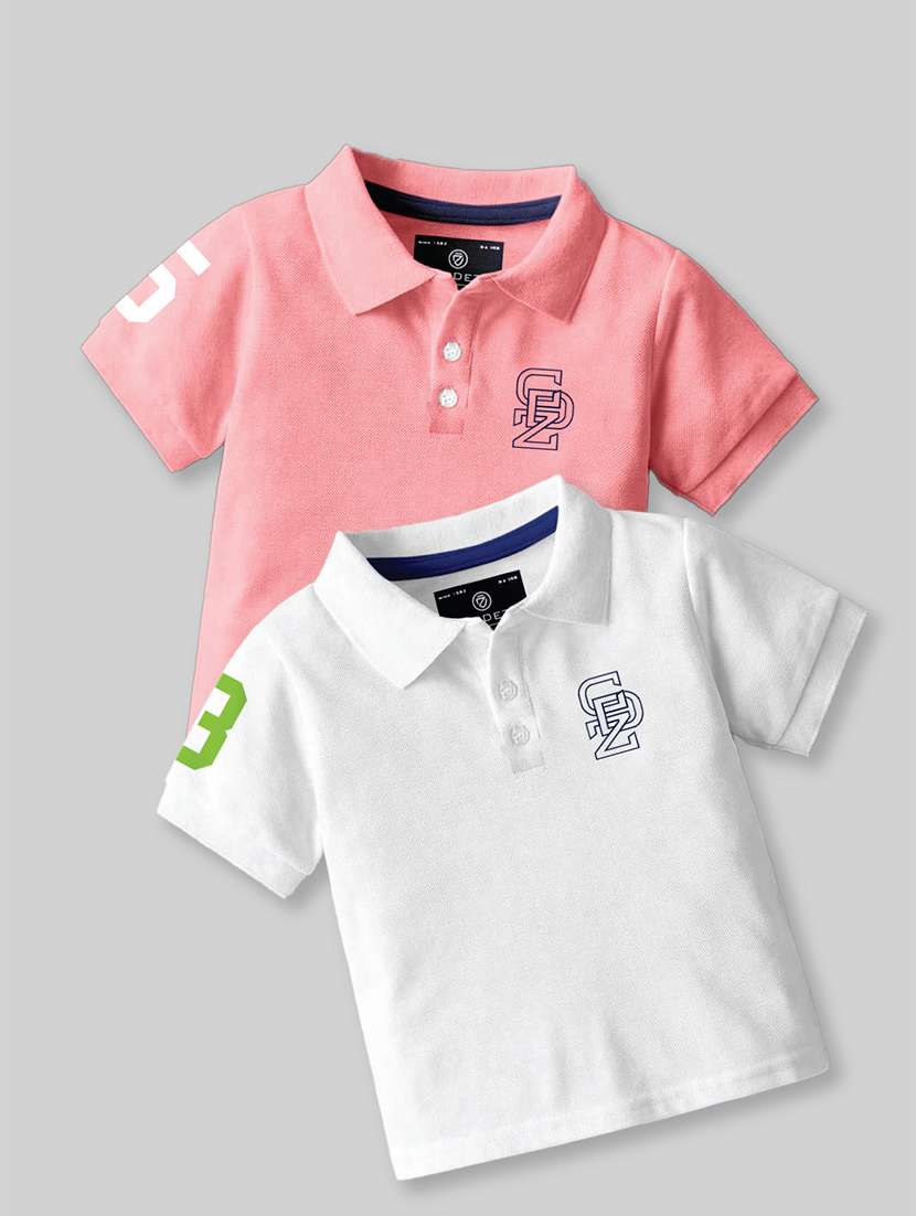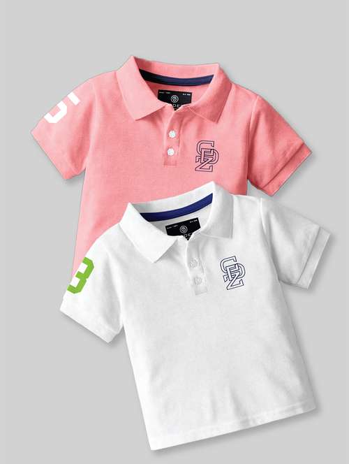 boys polo neck placement printed set of 2 casual t-shirt