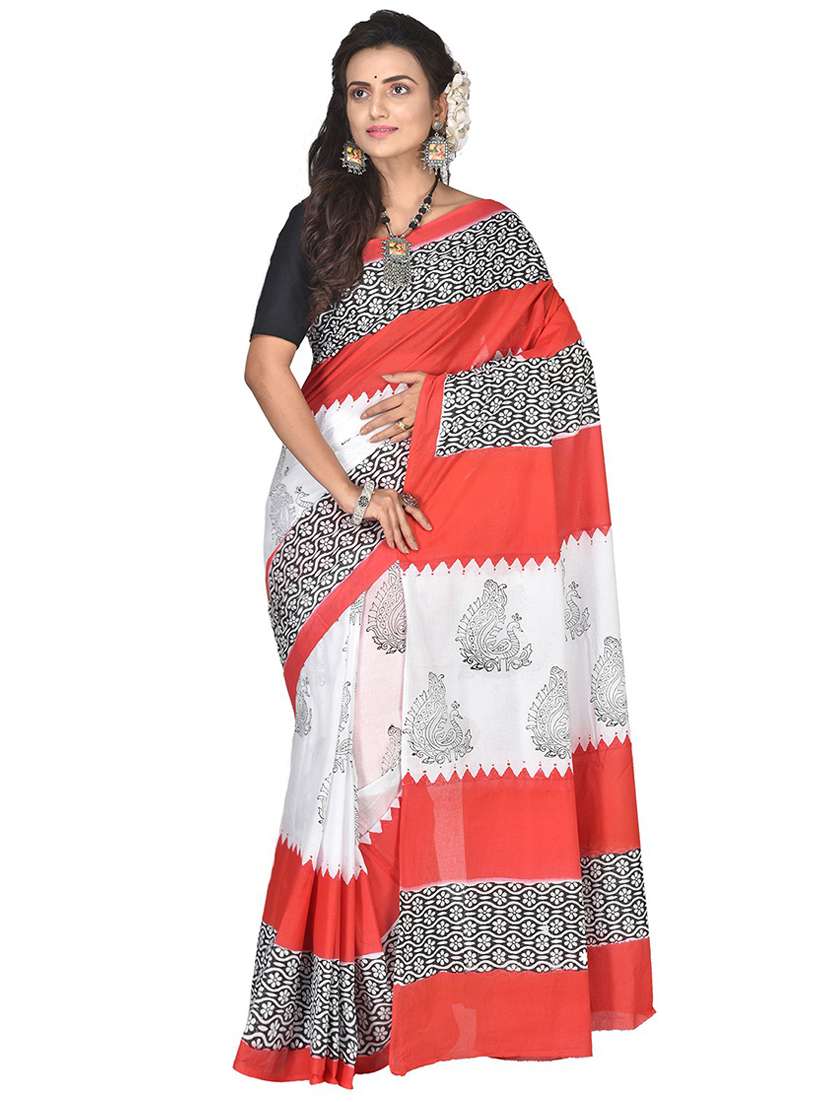 - » women multi color hand block printed saree with blouse