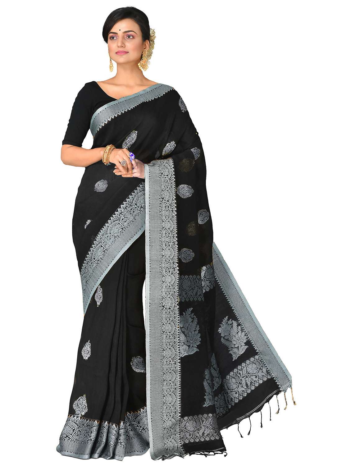 women self design bordered saree