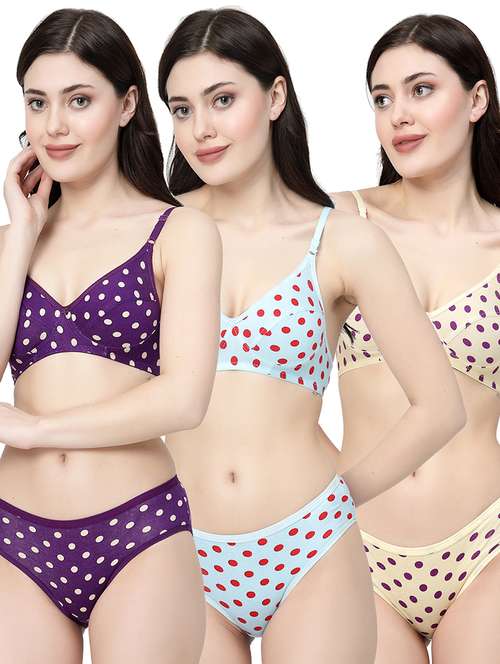women printed pack of 3 bra and panty set - 21495105 - Very Small Image - 1