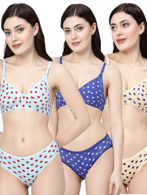 women printed pack of 3 bra and panty set