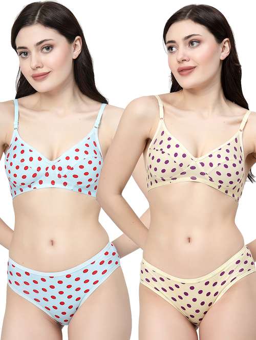 women printed pack of 2 bra and panty set