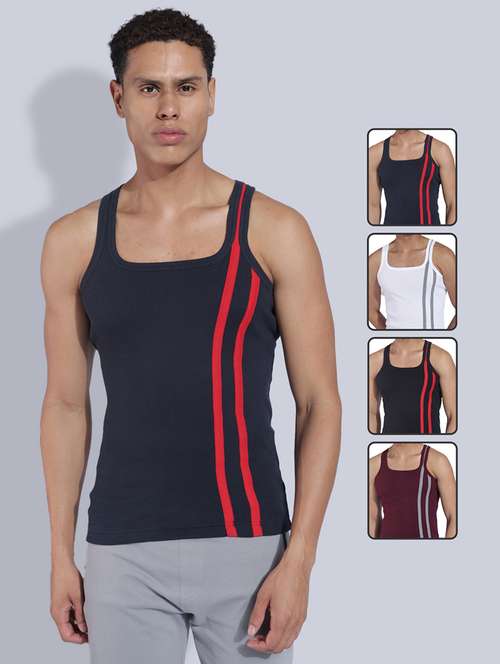men pack of 4 striped sleeveless vest