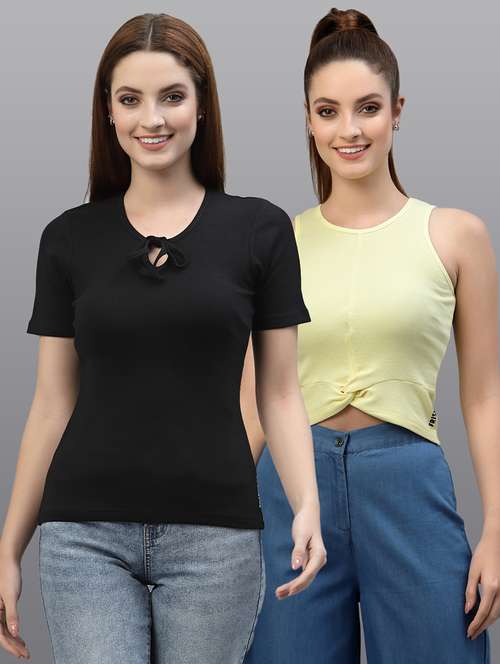 women set of 2 multi coloured casual top