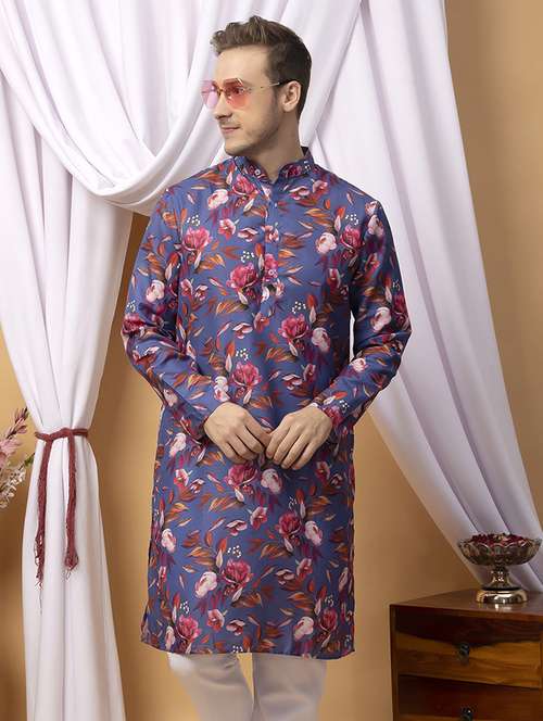 - » men blue printed long kurta