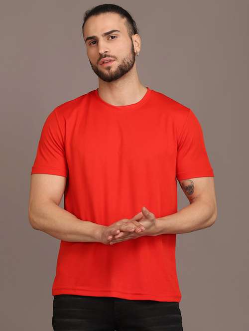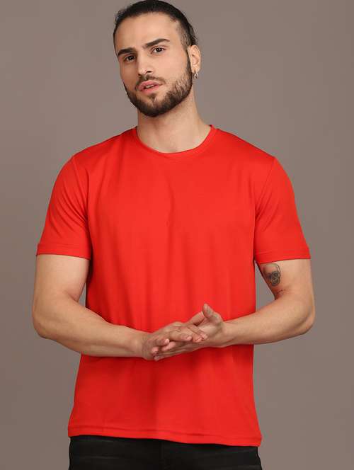 - » red cotton blend plain t-shirt