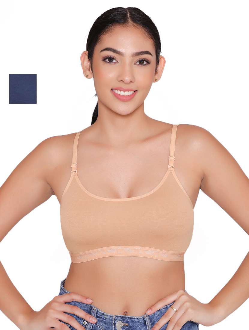 A bra that has a very soft and supportive fabric to give comfort and coverage to the growing breasts of girls. A teenager should normally go for a bra when her breasts need coverage to protect them from excessive motion and to keep them in shape. The correct time to start wearing a bra is when you start developing breasts which are around 12 years on average. This teenager bra for girls has full coverage double layered fabric in front to provide a seamless and smooth finish under all types of clothing. Made with 95% Cotton and 5% Lycra, this teenager bra for girls 13-14 years will give you complete support and fit all day. Easy slip on design which can be worn just like a tshirt .The Adjustable straps give you the flexibility to decide your lift and move around with ease. This sports bra for girls has a high strength stretchable cotton fabric for better support and modesty. This bra will help girls to easily transition to a full cup bra later. The design ensures healthy development of breasts at a young age. This teenagers’s bra is full coverage and provides you the desired support. Use it as a Lounge bra, work from home bra or simply everyday comfort bra. This Combo of 2 sports bra is Available in 6 colors and sizes from 30B-38B.
