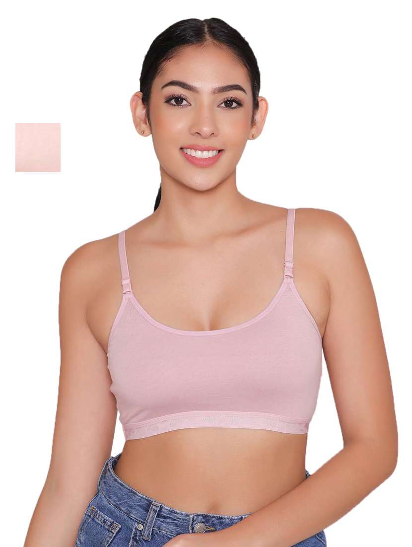 A bra that has a very soft and supportive fabric to give comfort and coverage to the growing breasts of girls. A teenager should normally go for a bra when her breasts need coverage to protect them from excessive motion and to keep them in shape. The correct time to start wearing a bra is when you start developing breasts which are around 12 years on average. This teenager bra for girls has full coverage double layered fabric in front to provide a seamless and smooth finish under all types of clothing. Made with 95% Cotton and 5% Lycra, this teenager bra for girls 13-14 years will give you complete support and fit all day. Easy slip on design which can be worn just like a tshirt .The Adjustable straps give you the flexibility to decide your lift and move around with ease. This sports bra for girls has a high strength stretchable cotton fabric for better support and modesty. This bra will help girls to easily transition to a full cup bra later. The design ensures healthy development of breasts at a young age. This teenagers’s bra is full coverage and provides you the desired support. Use it as a Lounge bra, work from home bra or simply everyday comfort bra. This Combo of 2 sports bra is Available in 6 colors and sizes from 30B-38B.