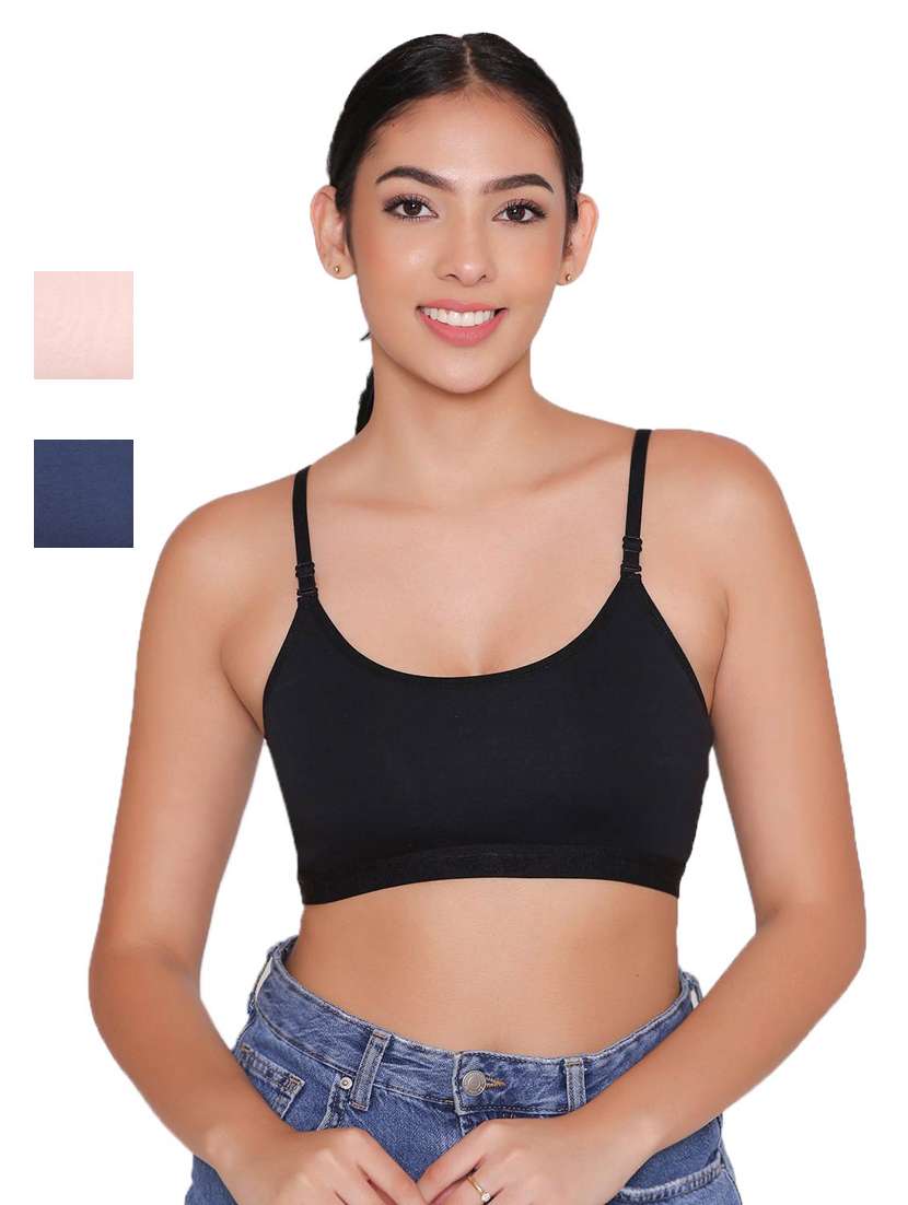 A bra that has a very soft and supportive fabric to give comfort and coverage to the growing breasts of girls. A teenager should normally go for a bra when her breasts need coverage to protect them from excessive motion and to keep them in shape. The correct time to start wearing a bra is when you start developing breasts which are around 12 years on average. This teenager bra for girls has full coverage double layered fabric in front to provide a seamless and smooth finish under all types of clothing. Made with 95% Cotton and 5% Lycra, this teenager bra for girls 13-14 years will give you complete support and fit all day. Easy slip on design which can be worn just like a tshirt .The Adjustable straps give you the flexibility to decide your lift and move around with ease. This sports bra for girls has a high strength stretchable cotton fabric for better support and modesty. This bra will help girls to easily transition to a full cup bra later. The design ensures healthy development of breasts at a young age. This teenagers’s bra is full coverage and provides you the desired support. Use it as a Lounge bra, work from home bra or simply everyday comfort bra. This Combo of 2 sports bra is Available in 6 colors and sizes from 30B-38B.