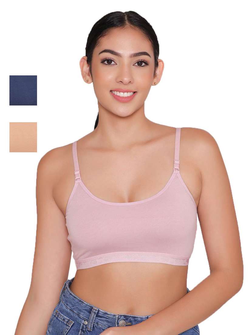 A bra that has a very soft and supportive fabric to give comfort and coverage to the growing breasts of girls. A teenager should normally go for a bra when her breasts need coverage to protect them from excessive motion and to keep them in shape. The correct time to start wearing a bra is when you start developing breasts which are around 12 years on average. This teenager bra for girls has full coverage double layered fabric in front to provide a seamless and smooth finish under all types of clothing. Made with 95% Cotton and 5% Lycra, this teenager bra for girls 13-14 years will give you complete support and fit all day. Easy slip on design which can be worn just like a tshirt .The Adjustable straps give you the flexibility to decide your lift and move around with ease. This sports bra for girls has a high strength stretchable cotton fabric for better support and modesty. This bra will help girls to easily transition to a full cup bra later. The design ensures healthy development of breasts at a young age. This teenagers’s bra is full coverage and provides you the desired support. Use it as a Lounge bra, work from home bra or simply everyday comfort bra. This Combo of 2 sports bra is Available in 6 colors and sizes from 30B-38B.
