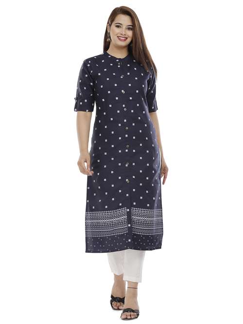 - Grab this beautiful kurta made up of cotton blend fabric featuring mandarin collar neck designs.