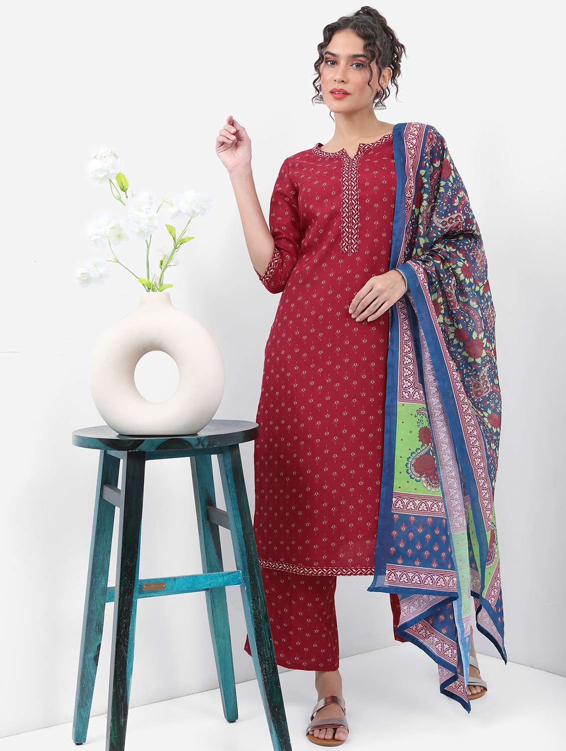 women printed kurta palazzo set with dupatta