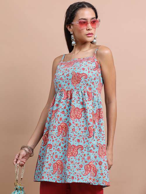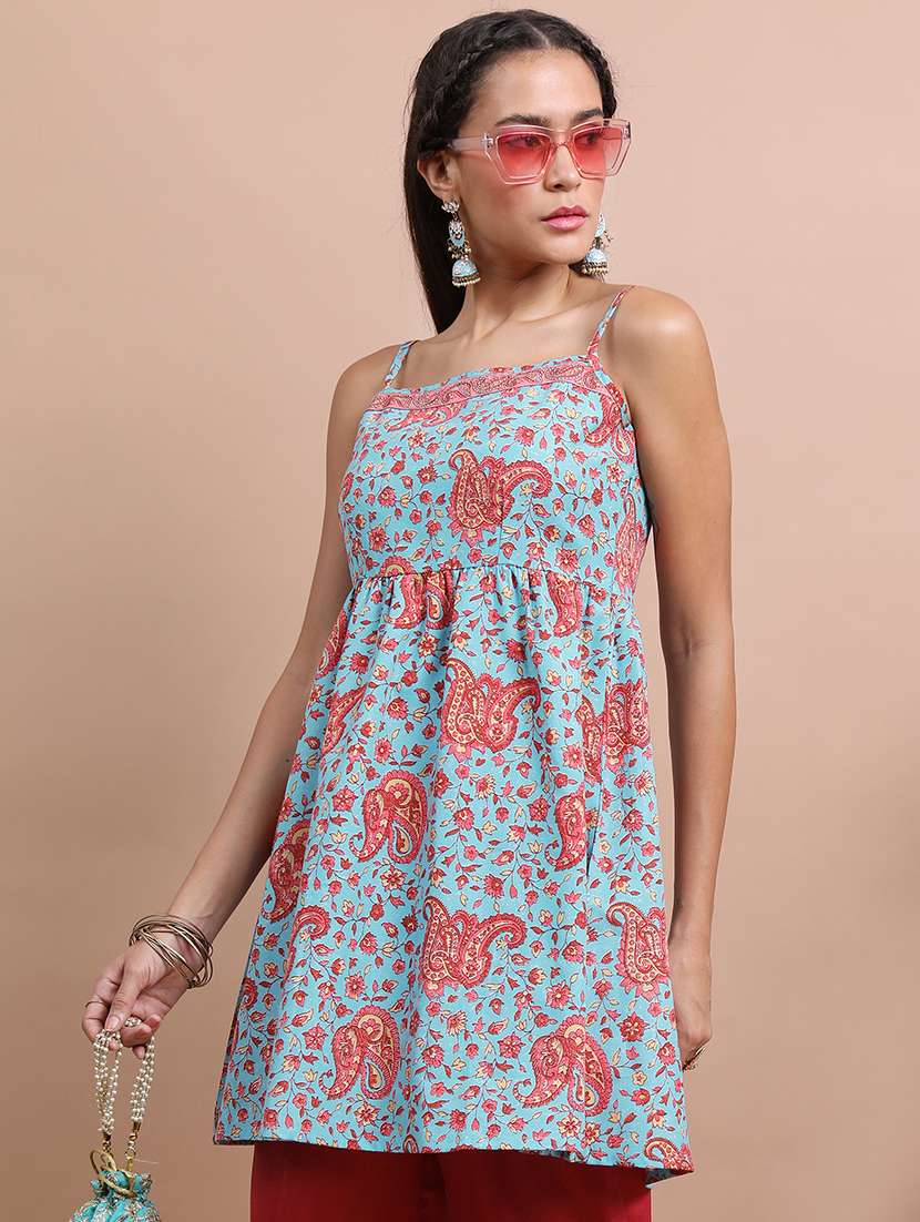 light blue paisley printed flared kurta - 21486613 -  Standard Image - 1 light blue paisley printed flared kurta - 21486613 -  Zoom Image - 1