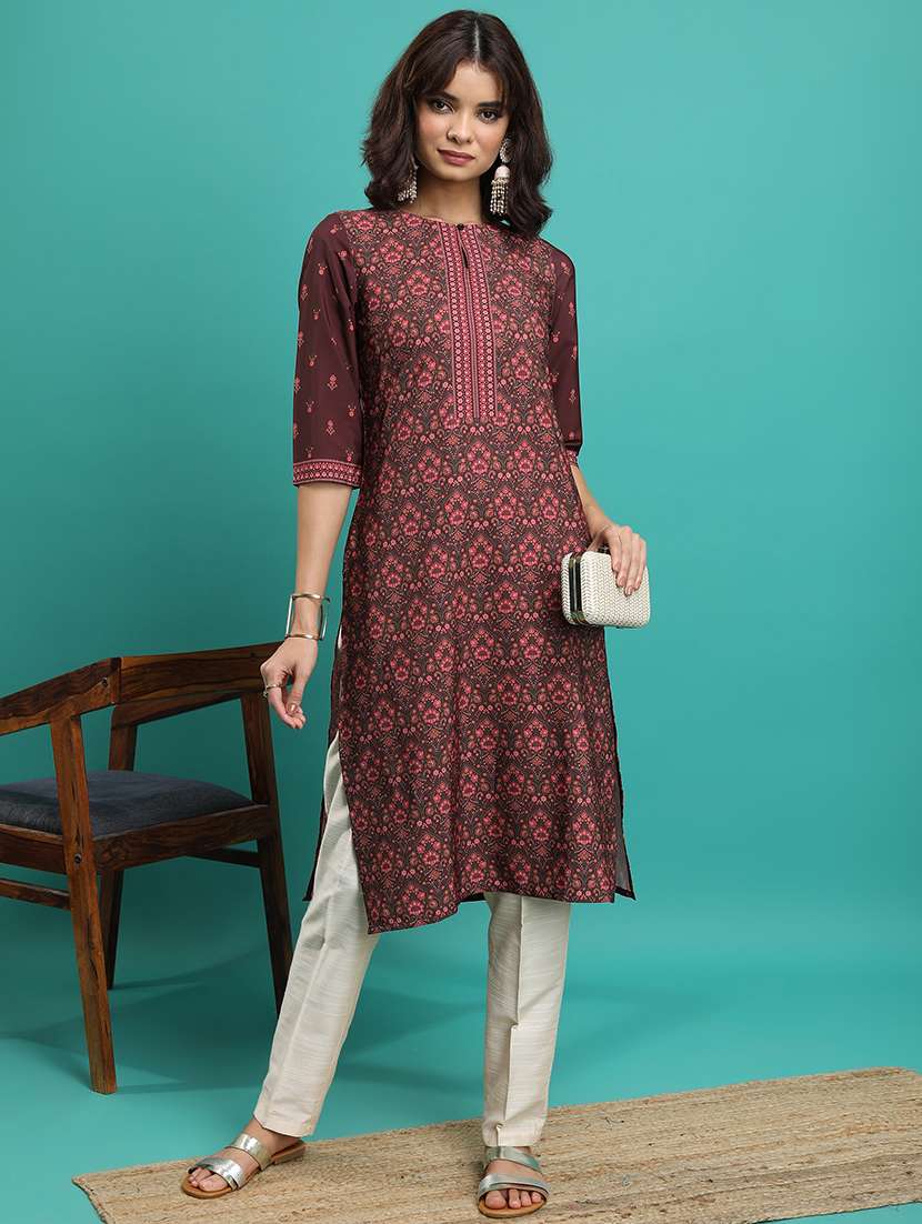 - » women three quarter sleeve printed a-line kurta