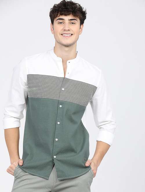 - » men collared color block casual shirt