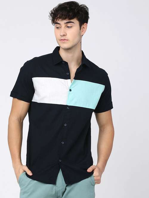 - » men collared color block casual shirt