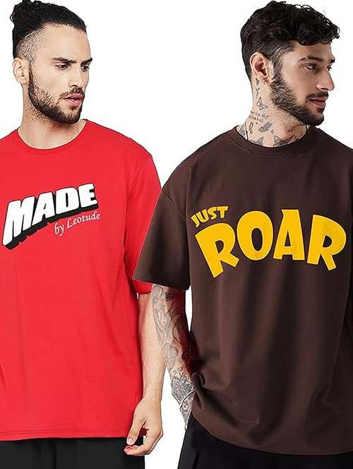 men pack of 2 printed short sleeve oversized fit t-shirt