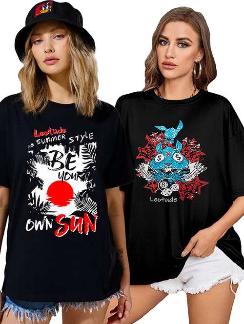 - » women pack of 2 printed short sleeve oversized t-shirt