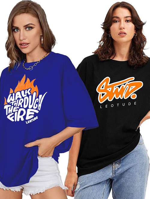 women pack of 2 printed short sleeve oversized t-shirt - 22059648 -  Standard Image - 0 women pack of 2 printed short sleeve oversized t-shirt - 22059648 -  Zoom Image - 0