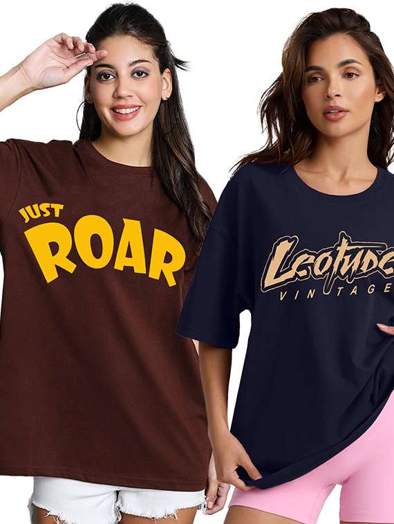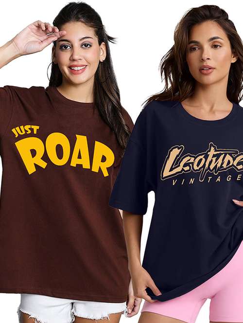 women pack of 2 printed short sleeve oversized t-shirt
