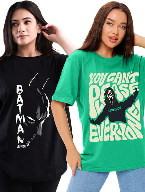 women pack of 2 printed short sleeve oversized t-shirt - 22059700 -  Standard Image - 0 women pack of 2 printed short sleeve oversized t-shirt - 22059700 -  Zoom Image - 0