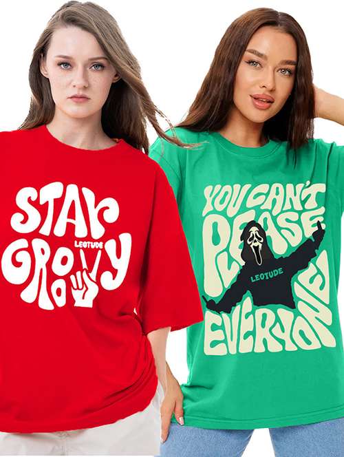 - » women pack of 2 printed short sleeve oversized t-shirt