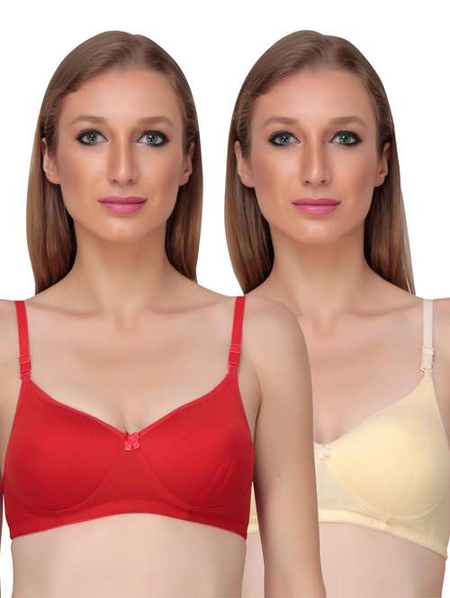 Liigne Women Everyday Padded Bra - Made of Pure Cotton Full Coverage Non Wired Seamless Pushup Soft Cup for T-Shirt Saree Dress Sports Garment for Daily Use Everyday (Pack Of 2)