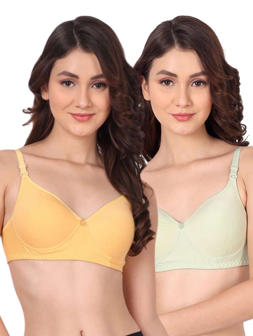Liigne Women Everyday Padded Bra - Made of Pure Cotton Full Coverage Non Wired Seamless Pushup Soft Cup for T-Shirt Saree Dress Sports Garment for Daily Use Everyday (Pack Of 2)