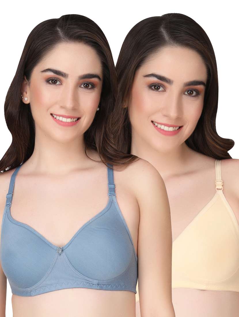 Liigne Women Everyday Non Padded Bra - Made of Pure Cotton Full Coverage Non Wired Seamless Pushup Soft Cup for T-Shirt Saree Dress Sports Garment for Daily Use Everyday (Pack Of 2)